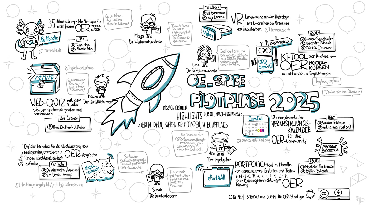 Die Pilotphase von OE_Space hat sieben innovative Kurzprojekte zusammengebracht, die mit kreativen Ideen und praxisnahen Ansätzen neue Impulse für offene Bildungsinfrastrukturen setzen – eine kompakte Übersicht zeigt auf einen Blick, wer die Teams hinter den Projekten sind und welche Lösungen sie entwickelt haben.